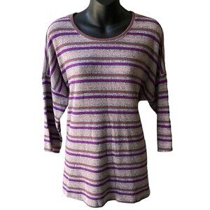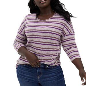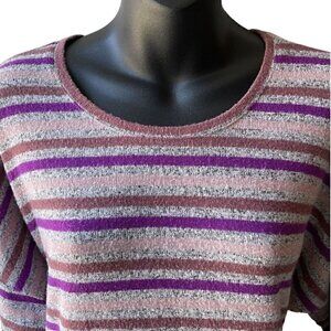 Torrid Super Soft Plush 3/4 Sleeve Striped Top Women’s L / 12 Pink, Purple, Gray