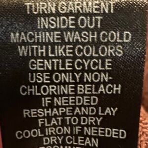 Care: Turn garment inside out; machine wash cold, gentle cycle; lay flat to dry; cool iron if needed; dry clean recommended for best results