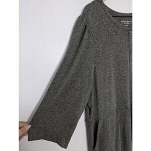 Torrid Super Soft Plush Puff Sleeve Mini Skater Dress in Dusty Olive. Has pockets, 3/4 Sleeves, 1/4 button panel.