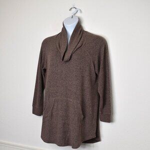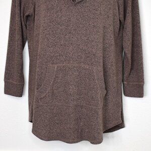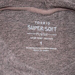 Pre-owned, good condition. No visible holes or stains. Normal signs of wear. Torrid Super Soft Plush Tunic. Soft neutral knit in light heathered mauve. Super Soft Plush knit fabric. Cowl neck. Long raglan sleeves w/ ribbed cuffs. Kangaroo pockets w/ ribbed trim. Shirttail hem. Size per tag: 1X (XL/ Extra Large). Knit blend: 48% Rayon/ 48% Polyester/ 4% Spandex. Size per tag does not guarantee desired fit, please see pictures for measurements.