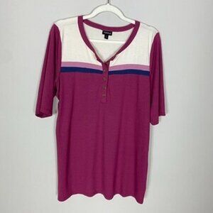 Torrid Super Soft Rib Color Block Henley Short Elbow Sleeve Tee Shirt Top Ribbed