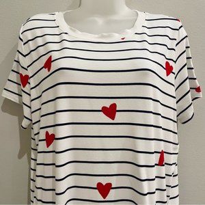 Torrid Supersoft Candy Hearts Striped Short Sleeve Crew Neck Top | Size 0/L