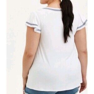 Torrid Supersoft Knits T Shirt Sz 1X Embroidered Neckline White Flutter Sleeve