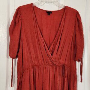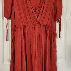 Torrid Surplice Faux Wrap Swiss Dot Midi Dress 2X Plus Terra Cotta Short Sleeve