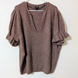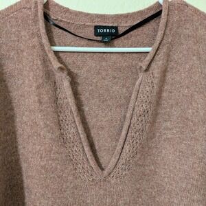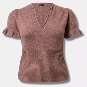 Torrid Sweater Sz 4/26 Vegan Cashmere V-Neck Ruffle Elbow Sleeve Pullover