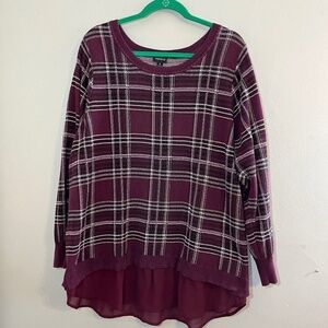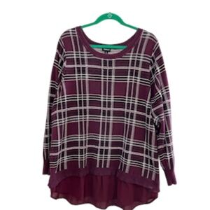 Torrid Sweater Women 26 Purple Pullover Plaid Chiffon Festive Holiday Classic