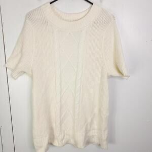 Torrid Sweater Womens 2X Short Sleeve Neutral Cream Waffle Cable Knit Classic