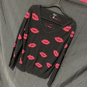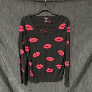 Torrid Sweatshirt Womens Long Sleeve Black Red Lips / Size 0 / V-21