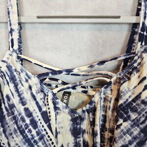 Torrid Swim top Womens 10 (00) Blue Whit tie dye strappy built in bra sexy casua