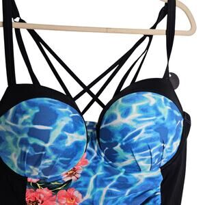 Torrid Swimsuit One Piece Swimsuit Women 3X D-DD Blue Black Strappy Swimsuit NEW