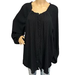 Torrid Swiss Dot Lace Inset Top Deep Black Long Sleeve Plus Size 4X