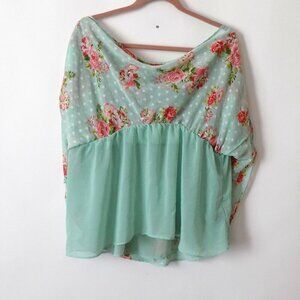 Torrid Swiss Dot off Shoulder Top Size 3X Floral Print Green