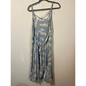Torrid Sz 00 (US 10 M/L) Light Blue Midi Feather Print Tie Waist Sundress