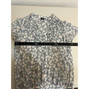 Torrid Sz 00 (US 10 M/L) Soft Grey Pink Floral Ditsy Gathered Waist Blouse Butto