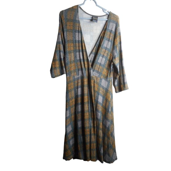 Torrid Outlander Tartan Plaid Faux Wrap Dress Green Grey Rayon Blend