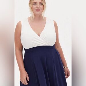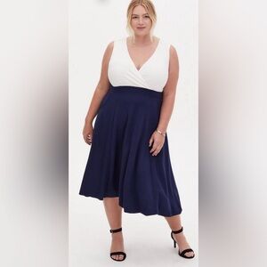 Torrid Sz. 2 (2X/18-20) White Jersey & Navy Ponte Midi Dress
