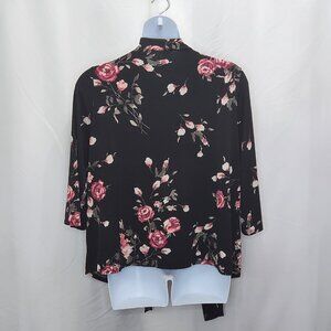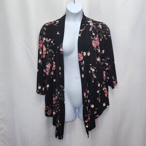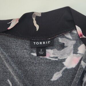 Open front floral cardigan from Torrid in their size 2. (Torrid puts this at a women's size 2X equivalent.) Black, pink, gray, cream. Gently used.