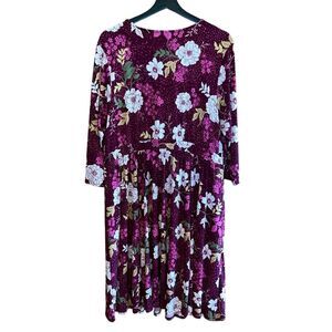 Torrid Sz 2 Studio Knit Faux Wrap Mini Dress Womens 2X (18/20) Wine Pink Floral.