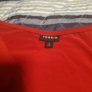 Torrid Sz 2X Babydoll Wrap Chiffon Sleeves Surplice Top Red Christmas Holiday