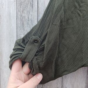 Torrid Sz 2X Roll Tab Half Sleeve Button Front Popover Shirt Dress Green Womens