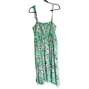 Torrid Sz 3 Plus Size Midi Dress Smocked Bodice Green Pink Flowers Cottagecore