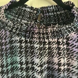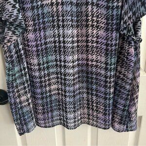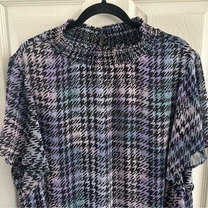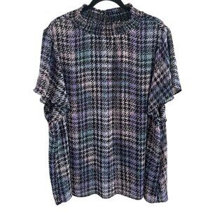 Torrid Sz 3X Houndstooth Semi-Sheer Purple Mock Neck Top Blouse