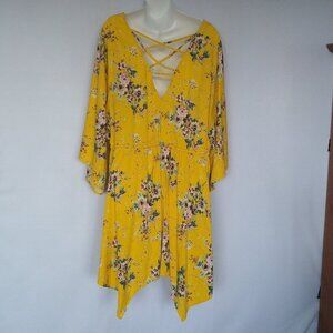 Torrid Sz 4 4X 26 Yellow Strappy SS Sharkbite Baby Doll Challis Dress Floral New