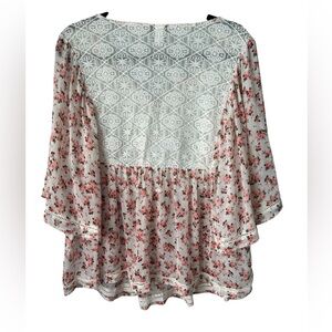 Torrid Sz Large White Pink Floral Ivory Lace Inset Chiffon Blouse Chasing Ditsy