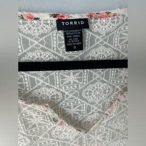 Torrid Floral Lace Inset Chiffon Blouse