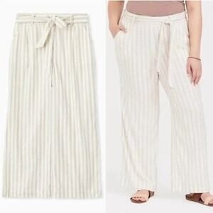 Torrid Size 24 Tan Cream Linen Blend Striped Wide Leg Pants High Rise Casual