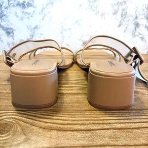 Description: Torrid tan mesh heels with a chunky heel and buckle closure. Size 11.5 WW. Faux Leather.