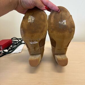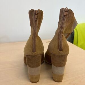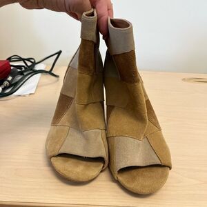 Torrid Tan Patchwork Suede Peep Toe Bootie sz 9.5W