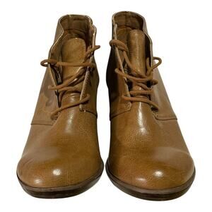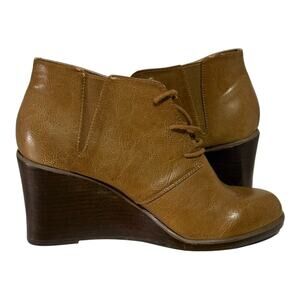 Torrid Tan Wedge Booties Women's Size 11 Faux Leather Lace-up Chunky Heel
