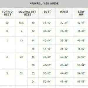 Torrid size is 00 which is equivalent to a size M/L (10).