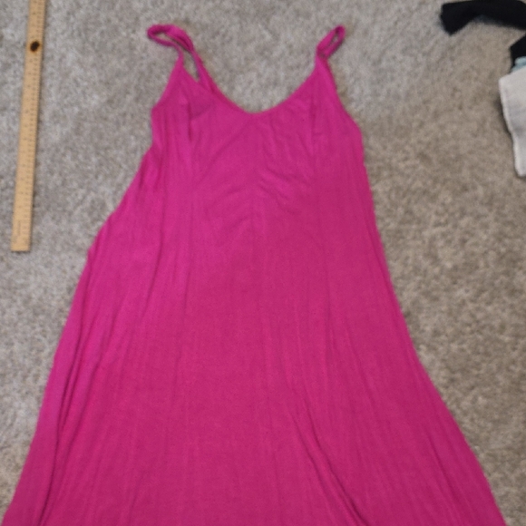 hot pink maxi tank dress. adjustable spaghetti straps. a line style.