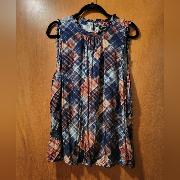 Beautiful fall plaid Torrid tank top with ruffle sleeve and neckline