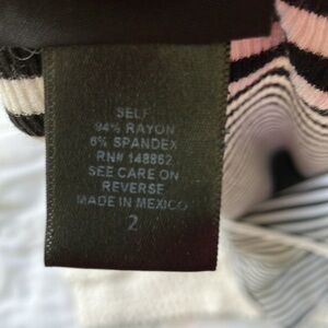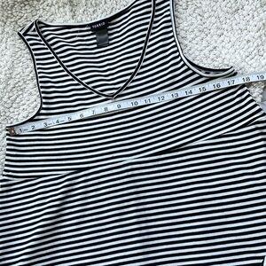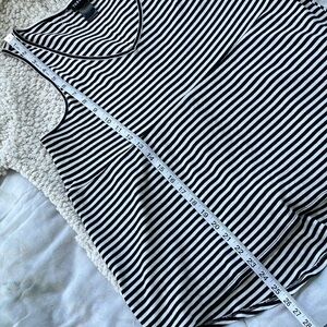 V-neck, ribbed, black/white striped. Babydoll tank. 2X. Medium weight. Good condition. Measurements are in pictures.
