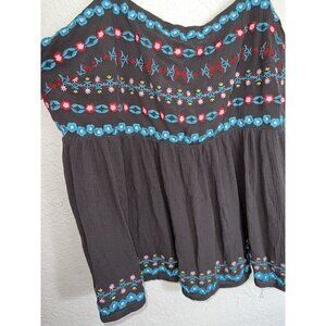 Torrid Tank Top Blouse Grey Floral Embroidered Size 1X Plus Size Boho X1