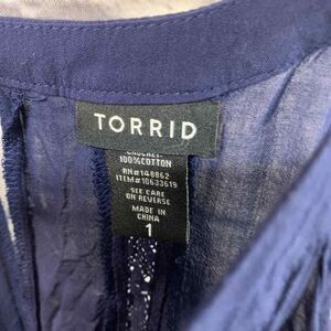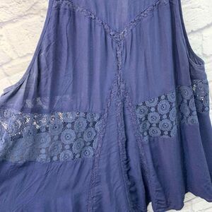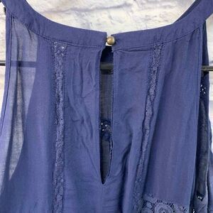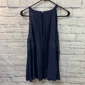 Torrid Tank Top Size 1 Challis Lace Inset High Neck Blue Keyhole