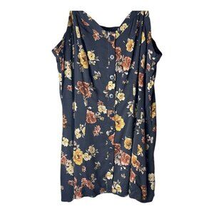 Torrid Tank Top Women 10 Black Floral Print Button Front Shirt Boho Festival