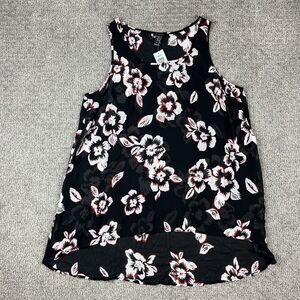 Torrid Tank Top Womens 2X Black White Red Floral Hi Lo Chiffon Sleeveless Sheer