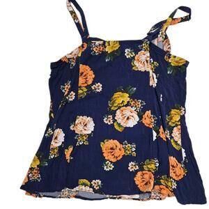 Torrid Tank Top Women's XL 1 Blue Floral Challis Seamed Sleeveless Cami Roses
