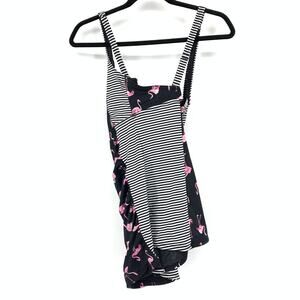 Torrid Tankini Swim Top Womens Size 0X Flamingo Print Black White Striped Sides