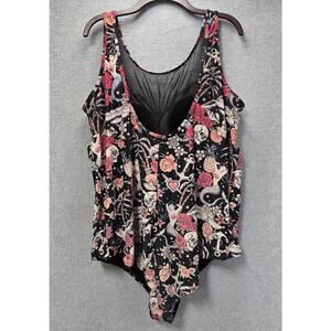 Torrid Tattoo Print High Neck Skull Mermaid Pineapple One Piece Swimsuit Size 5X