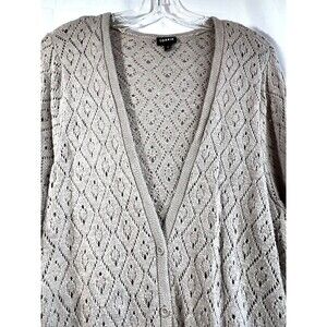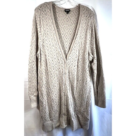Torrid Taupe Pointelle Button Front Boyfriend Cardigan Sz 3