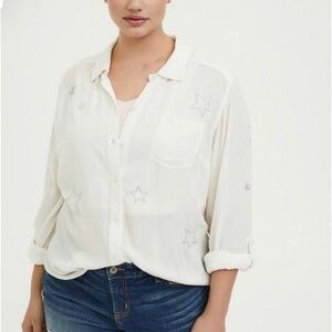 Torrid Taylor White Gauze Embroidered Star Button Front Relaxed Fit Shirt 4 4X