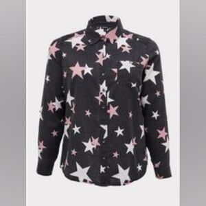 Torrid Taylor relaxed fit rayon twill button up shirt star design long sleeve 5X