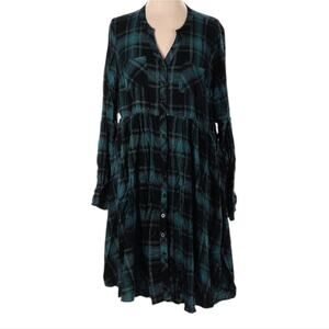 Torrid Teal Black Plaid Mini Challis Button Front Shirt Dress Plus Size 2X 2