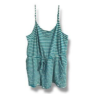 Torrid Teal & White Striped Drawstring Romper