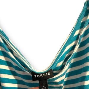 Torrid Teal & White Striped Drawstring Romper – Size 2